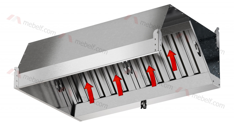 - Зонт вытяжной нержавеющий пристенный ЗВН03 – зонт пристенный выполнен из нержавеющей стали AISI430 толщиной 0,7 мм, задняя стенка изготовлена из оцинкованной стали 0,7 мм и оснащен встроенными нержавеющими жироуловителями для удаления жира. Имеет 1 врезку для оттока воздуха (размер врезки по согласованию)